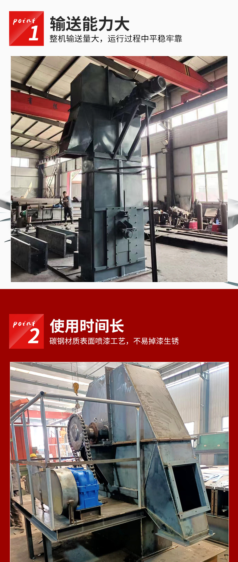 2、可以垂直提升物料并且可以處理大量物料。鏟斗的特殊設計確保了高度穩定性并降低了溢出風險。