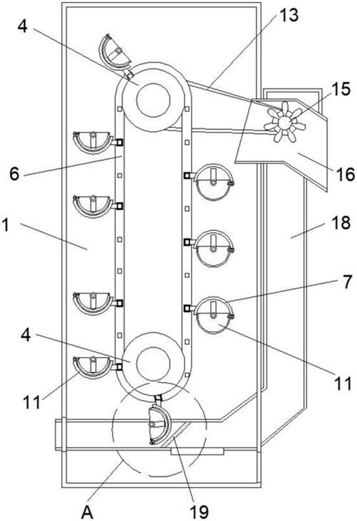 鏈斗式提升機(jī)啟動(dòng)后電機(jī)驅(qū)動(dòng)頭部頭輪旋轉(zhuǎn),帶動(dòng)無(wú)極牽引鏈條循環(huán)運(yùn)轉(zhuǎn)。固定于鏈條的料斗行至底部時(shí),運(yùn)行方向轉(zhuǎn)為向上,將進(jìn)料口原料“掏取”入斗。料斗滿載物料被平穩(wěn)提升至頭部,繞過(guò)頭輪時(shí)方向改變,物料主要依靠自身重力從斗中卸出,經(jīng)卸料口排入指定設(shè)備??樟隙冯S后沿下行分支返回底部,重新開(kāi)始掏料,形成連續(xù)工作循環(huán)。