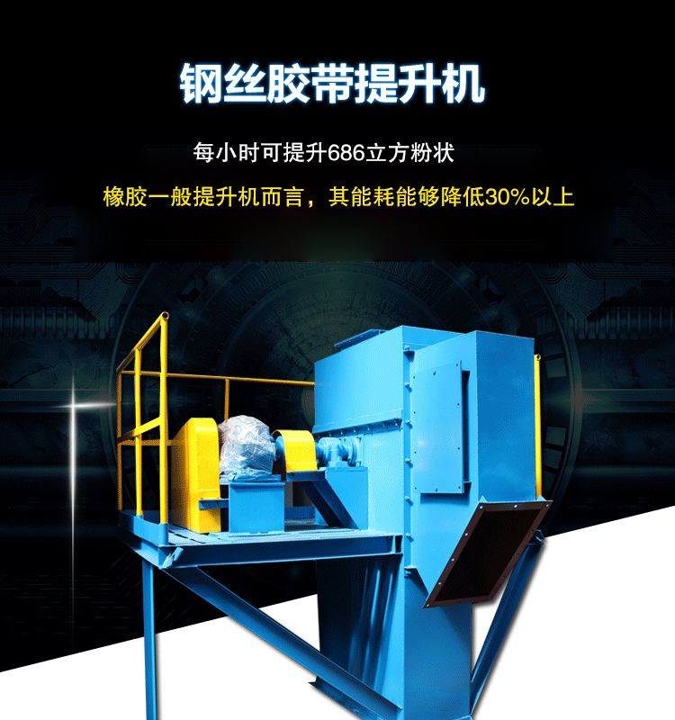 鋼絲膠帶斗式提升機固接著一系列料斗的牽引構件(鋼芯繩芯橡膠帶)環繞在提升機的頭輪與底輪之間構成閉合輪廓。驅動裝置與頭輪相連,使斗式提升機獲得動力并驅動運轉。張緊裝置與底輪相連,使牽引構件獲得必要的初張力,以保證正常運轉。物料從提升機的底部供入,通過輪廓。驅動裝置與頭輪相連,使斗式提升機獲得動力并驅動運轉。張緊裝置與底輪相連,使牽引構件獲得必要的初張力,以保證正常運轉。物料從提升機的底部供入,通過一系列料斗向上提升至頭部,并在該處實現卸載,從而實現在豎直方向內運送物料。
