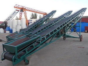 皮帶輸送機主要由兩個端點滾筒及緊套其上的閉合輸送帶組成。帶動輸送帶轉動的滾筒稱為驅動滾筒(傳動滾筒);另一個僅在于改變輸送帶運動方向的滾筒稱為改向滾筒。驅動滾筒由電動機通過減速器驅動,輸送帶依靠驅動滾筒與輸送帶之間的摩擦力拖動。驅動滾筒一般都裝在卸料端,以增大牽引力,有利于拖動。物料由喂料端喂入,落在轉動的輸送帶上,依靠輸送帶摩擦帶動運送到卸料端卸出